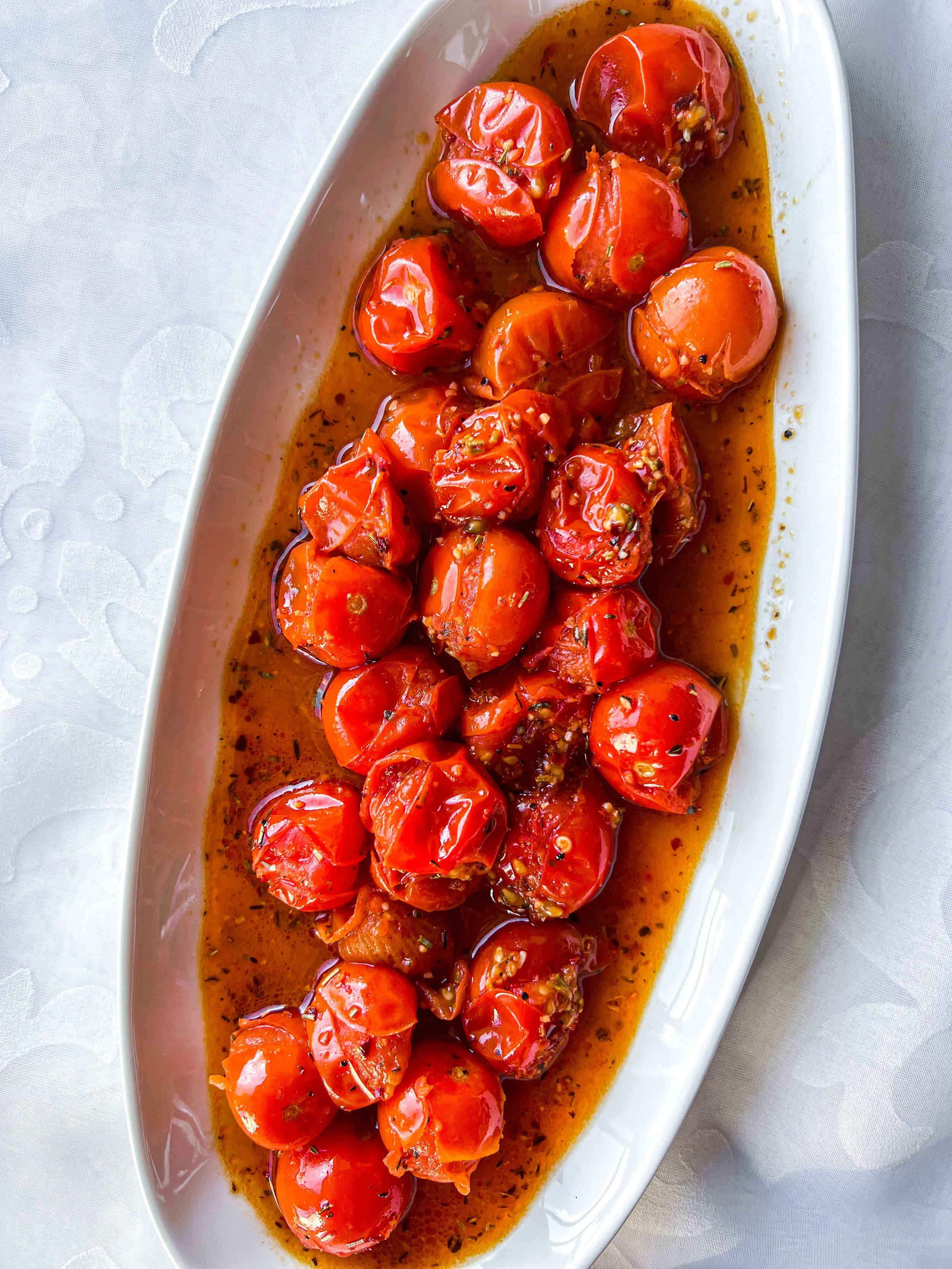 Solo ingredientes que hablan por sí solos: tomate, hojilla de pimentón, ajo, tomillo, mejorana, orégano, romero, corteza de limón y pimienta.